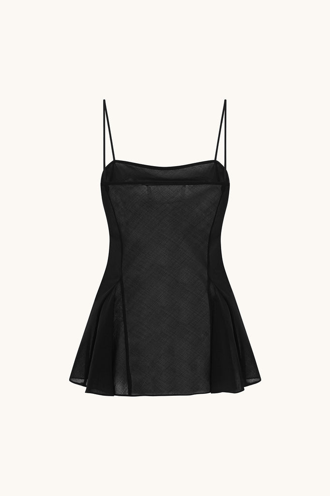 The FOUNDATION camisole features a clean neckline and delicate slim straps, falling with a light, fluid movement. Crafted from breathable Japanese voile, it feels effortlessly soft against the skin and is perfect for layering. Rendered in classic black, it is a quietly versatile piece that works just as well worn alone or beneath tailored separates.