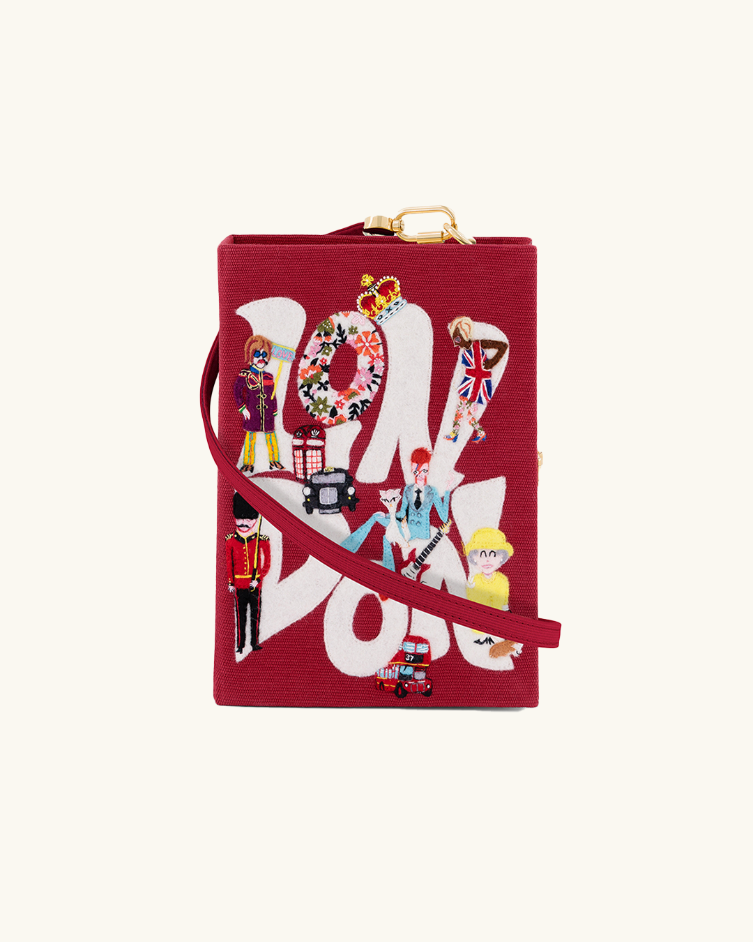 An original clutch designed in collaboration with Olympia Le-Tan. With its iconic shape and special design, the LONDON Clutch is hand embroidered with silk thread and felt appliqué. The bag has a stainless-steel frame and the inner lining is made from Liberty® fabric which is unique for each piece.