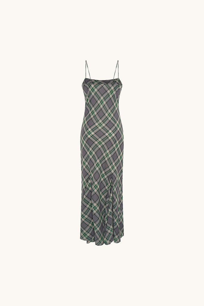 The LARA slip dress offers a contemporary take on classic essential. Designed with thin straps and a soft square neckline, it features a fitted bodice and flared hem for easy movement. Made from lightweight Japanese voile in black check, it drapes fluidly to create a flattering silhouette.