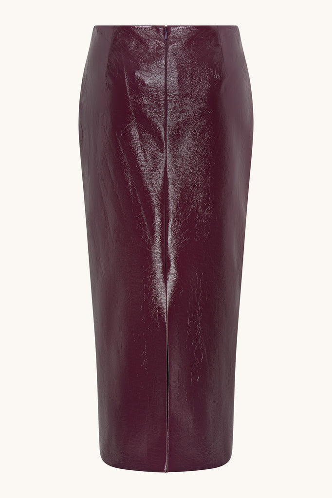 CARINE is our sleek pencil skirt. Cut to a straight, fitted silhouette with a back slit for ease of movement. Made from leatherette, it has a smooth, structured finish that elevates any look.