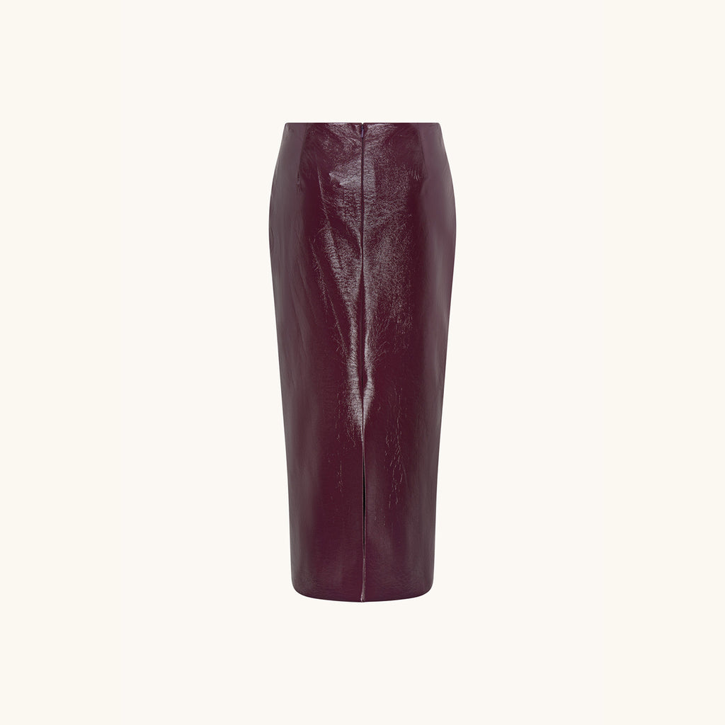 The CARINE pencil skirt offers a sleek, modern twist on a wardrobe classic. Cut to a straight, fitted silhouette with a back slit for ease of movement, it combines sharp structure with effortless wearability. Made from leatherette, it provides a smooth, polished finish that elevates any look.