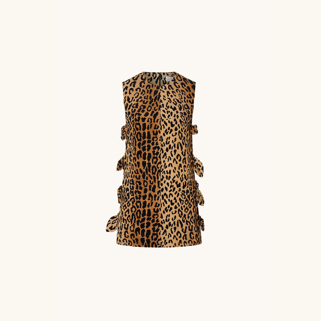 The MINI VERUSHKA dress in corduroy leopard reimagines a classic silhouette with a bold, modern attitude. Crafted in England from soft textured corduroy, it offers structure and comfort in equal measure.
