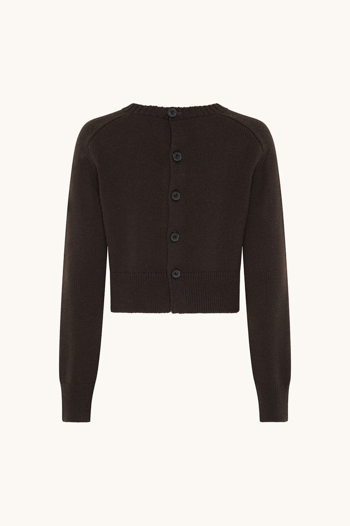 The CARO jumper brings a modern take on classic knitwear. Crafted from the finest British cashmere using Loro Piana yarn, and spun in Mongolia, it offers a relaxed fit with clean, structured lines. Buttons along the back add a subtle detail, while its reversible design allows it to be worn as a playful cropped cardigan.
