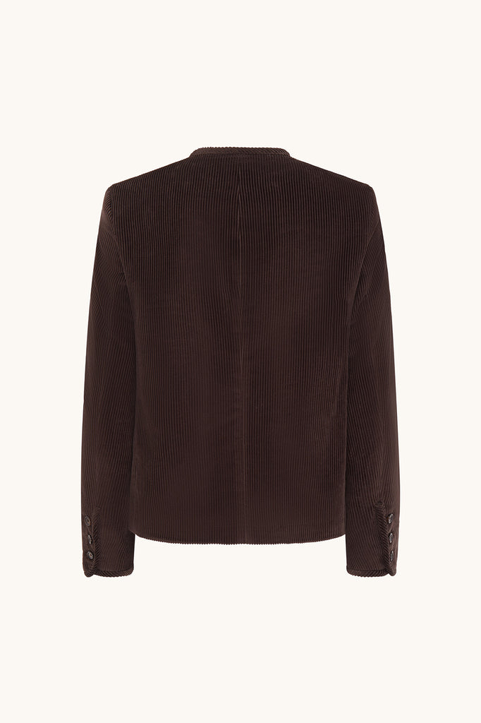 The JOSEPHINE jacket brings a fresh take on casual tailoring. Designed with a round neckline and button-front closure, it features a straight fit with practical patch pockets. Crafted from soft cord in bark brown, it combines structure with a comfortable feel.