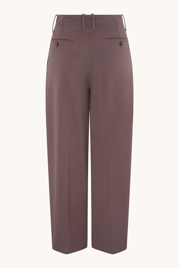 RONNY is our tailored trouser. Designed with a high waist, front pleats, and a straight leg, it offers a structured yet relaxed silhouette. Made from premium Italian wool in bark brown, it provides warmth and durability with a polished finish. Suitable for both day and evening wear.