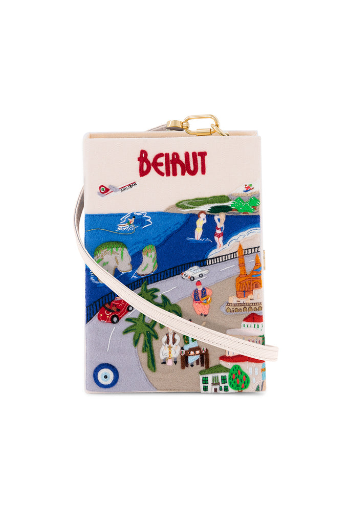 An original clutch designed in collaboration with Olympia Le-Tan. With its iconic shape and special design, the BEIRUT Clutch is hand embroidered with silk thread and felt appliqué. The bag has a stainless-steel frame and the inner lining is made from Liberty® fabric which is unique for each piece.